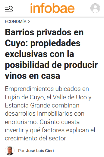 Imagine un estilo de vida de sofisticación y tranquilidad en Pueblo de Viñedos, un loteo excepcional inmerso en el paisaje vitivinícola de Agrelo, Luján de Cuyo. Despierte rodeado de la serenidad de los viñedos de más de 70 bodegas de renombre mundial y la majestuosa presencia de la Cordillera de los Andes. La estratégica ubicación, con fácil acceso a la Ruta 7 y su conexión con Chile, le brinda la libertad de explorar experiencias exclusivas en un entorno natural privilegiado.