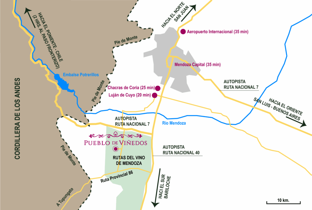 A 15 minutos de la ruta 7 que une Argentina con Chile y 2 horas del paso fronterizo.